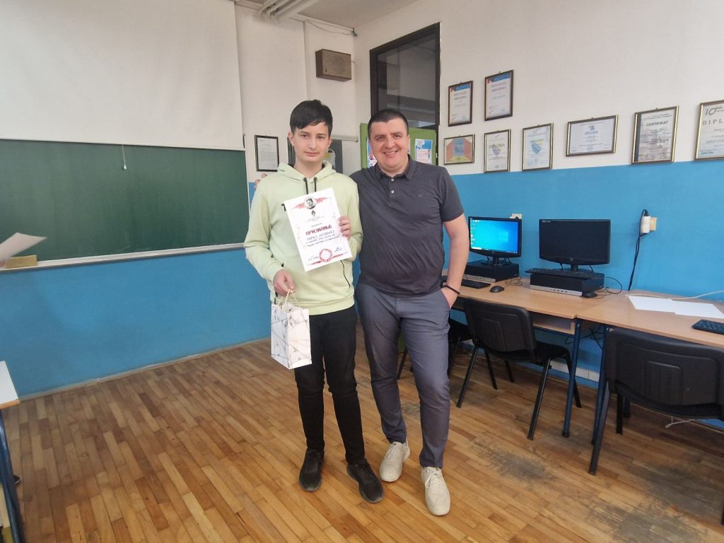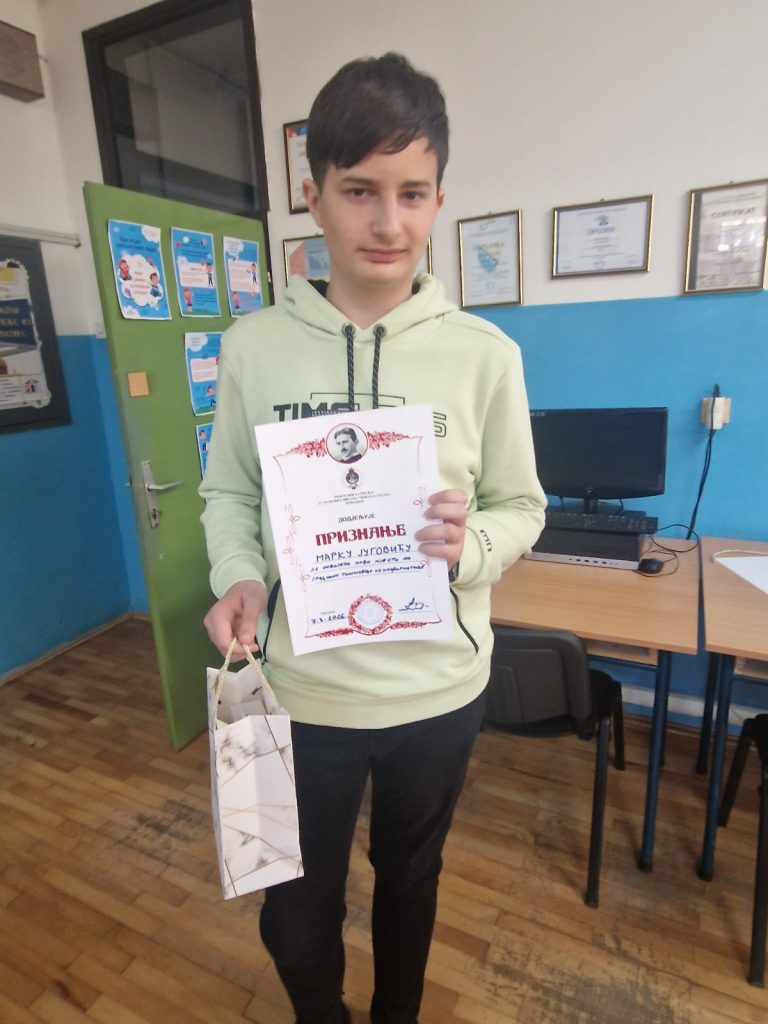 На недавно одржаном градском такмичењу из Основа информатике – ПРОГРАМИРАЊЕ, Марко Југовић, IX1разред, освојио је ПРВО мјесто