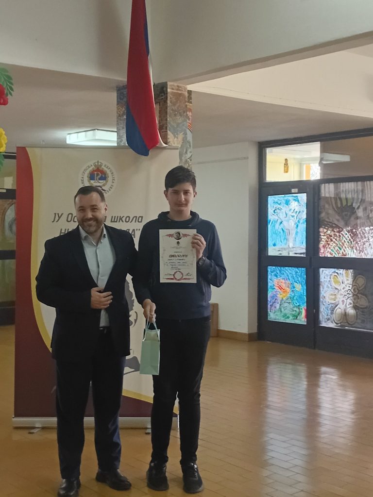 Честитамо ученику и наставници Татијани Москаљук на изузетном успјеху и желимо им пуно среће у даљем такмичењу!